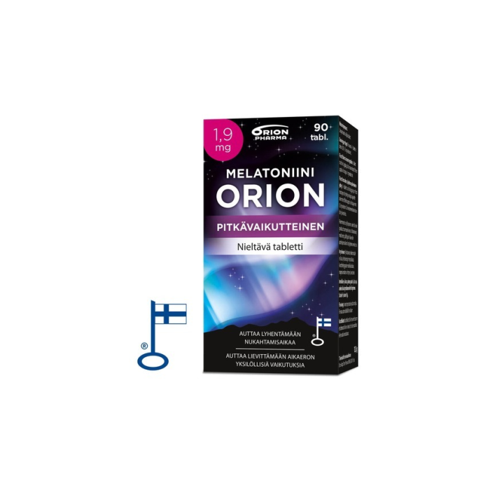 Pitkävaikutteinen helposti nieltävä melatoniinitabletti. Yksi tabletti sisältää 1,9 mg melatoniinia, joka auttaa lyhentämään nukahtamisaikaa ja lievittämään aikaeron yksilöllisiä vaikutuksia. Tabletissa on jakouurre. Avainlippu-tuote. Ravintolisä.