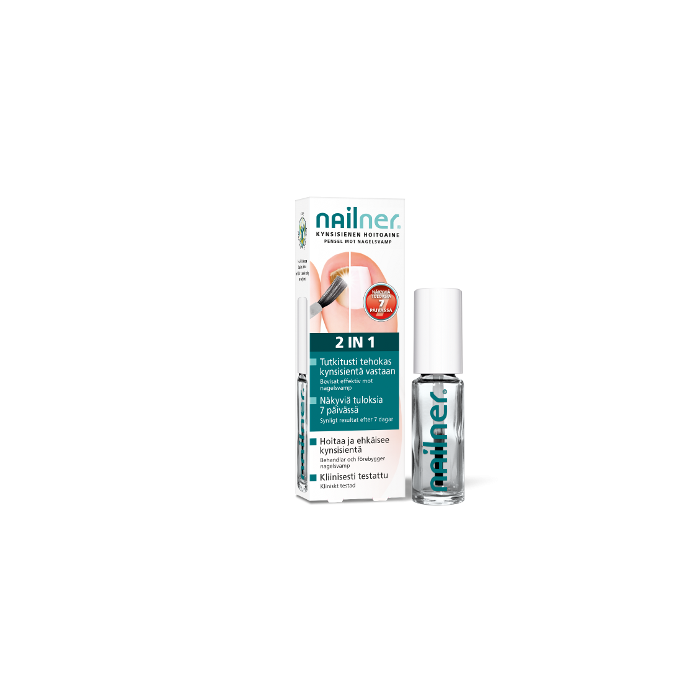 Nailner 2in1 Hoitoaineen patentoitu koostumus läpäisee kynnen ja vaikuttavat aineet pääsevät hoitamaan kynsisienitulehdusta syvällä kynnen sisällä. Nailner Hoitoaine 2in1 vaikuttaa paikallisesti ja sillä ei ole haittavaikutuksia.